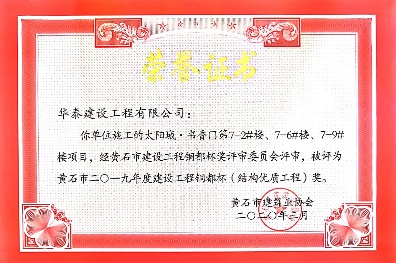 日前,由我司承建的太陽城書香門第項目,被黃石市建筑業協會評為的“2019年度結構優質工程獎”。 我司秉承“質量為先,信譽為重,管理為本,服務為誠”的企業理念,制定了嚴謹的施工計劃和安全質量防護措施,精心組織、合理安排、科學管理、統籌規劃,精選精銳的施工隊伍,配備過硬的技術力量,投入先進的施工設備,并根據工程實際,為工程安全、高質和如期交付使用提供了有力支持和保證。