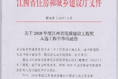 2019年3月28日,江西省住房和城鄉建設廳根據《江西省優質建設工程獎評選辦法》會議研究評定,華泰建設工程有限公司施工的吉水縣文峰大道白改黑改造工程入選2018年江西省優良工程獎。