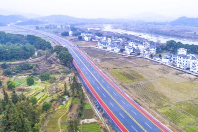 2018年1月1日,在鉛山縣河永快速通道(河口至永平)上,工人正在畫標示線,這標志著該快速通道即將建成通車。距離2016年11月底開工以來,13個月的時間的緊張施工,這條橫臥河口鎮至永平鎮之間,10分鐘僅能行駛完全程的美麗公路,終于就要向世人“見面”了。